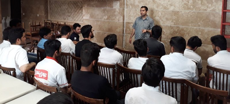 به منظور افزایش آگاهی در زمینه اصول بهداشتی به همت آموزشگاه اصناف سیب سلامت، از تاریخ ۹۸/۳/۷ تا ۹۸/۳/۱۳ کلاسهای آموزش بهداشت اصناف برای کلیه کارکنان آشپزخانه و سالن کاران چلوکبابی جوانان شعبه پیچ شمیران برگزار گردید. در این دوره نیز همانند دوره های برگزار شده در محل های مورد تائید مرکز بهداشت شمال تهران، درس قوانین و مقررات و آئین نامه ها بصورت تئوری و عملی برگزار گردید و در محل آموزش و نکات لازم داده شد و از تک تک افراد شستشوی صحیح دست ها و سالم سازی سبزیجات و صیفی جات و شرایط بهداشتی یخچال، انبار، سردخانه و دیگر محیط های حساس آشپزخانه سئوال شد. کارکنان این دوره را مهم و تجدید آن را ضروری دانستند.
