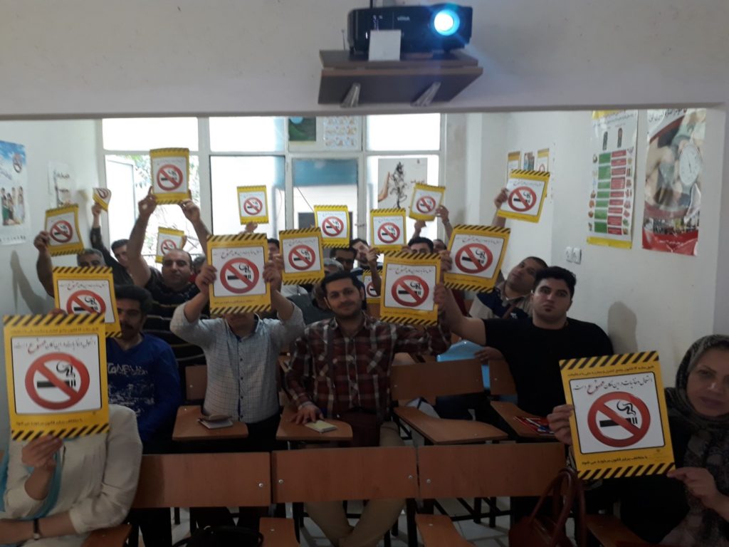 آموزشگاه بهداشت اصناف سیب سلامت بمناسبت فرا رسیدن هفته ملی بدون دخانیات که از ۴ خرداد الی ۱۰ خرداد ادامه دارد؛ اقدام به توزیع گسترده پوسترهای (ممنوعیت استعمال دخانیات ممنوع) در بین متصدیان دوره های برگزار شده کرده است؛ این اقدام به همت مدیریت آموزشگاه بهداشت اصناف سیب سلامت با همکاری پرسنل مرکز بهداشت شمال تهران انجام گرفت. در دوره های برگزار شده در ماه خرداد ماه ۱۳۹۷، تدریس آلودگی هوا و مبارزه با دخانیات، هشدارهایی درباره فریب سیگارهای الکترونیک، قلیان های جیبی و … بصورت عملی و تئوری توسط مدرسین محترم آموزشگاه تدریس شد، که در آینده توضیحات مبسوطی ارائه خواهد شد.